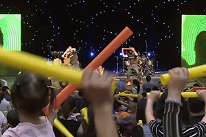 打击乐中的几种常见乐器被带到了演出现场:一根彩色声管、一面定制手鼓、一个超级金贝鼓,还有一样奇特的乐器,那就是您的身体!台上台下运用5种打击乐器共同演奏,一起创造活泼新鲜的音乐世界!