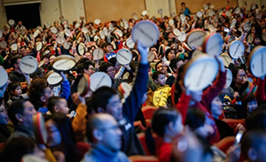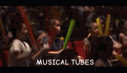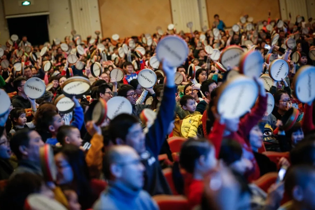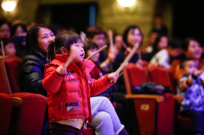 演出开始前,每个座位上就会摆好乐器袋,共4种乐器:一对特制的木质安全鼓槌、一根彩色声管、一面定制手鼓,还有一样奇特的乐器,在演出期间,台上的艺术家会指导每位观众用4种乐器参与互动,共同表演,一起创造活泼新鲜的音乐世界。
